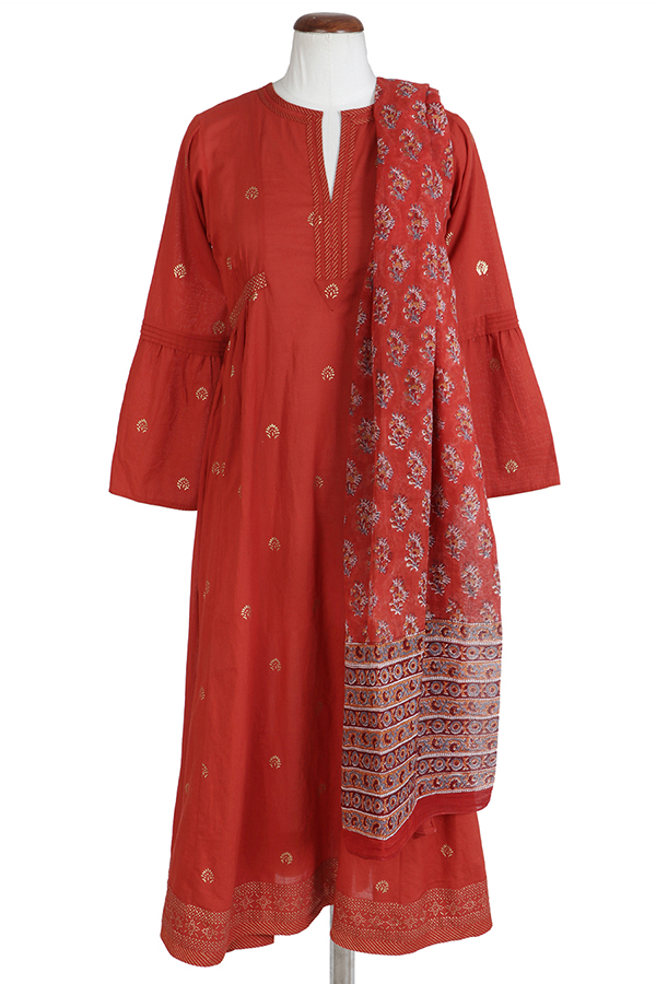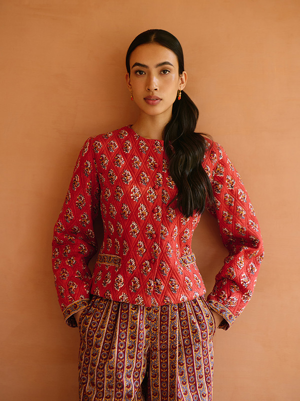 Our Alba collection welcomes the start of festive winter season. Find a classic buti & complementary stripe in rich hues of brick red & maroon. A multitude of specials include soft quilted jackets, hand embroidery on handloom fabric & cotton plains adorned with gold printing.